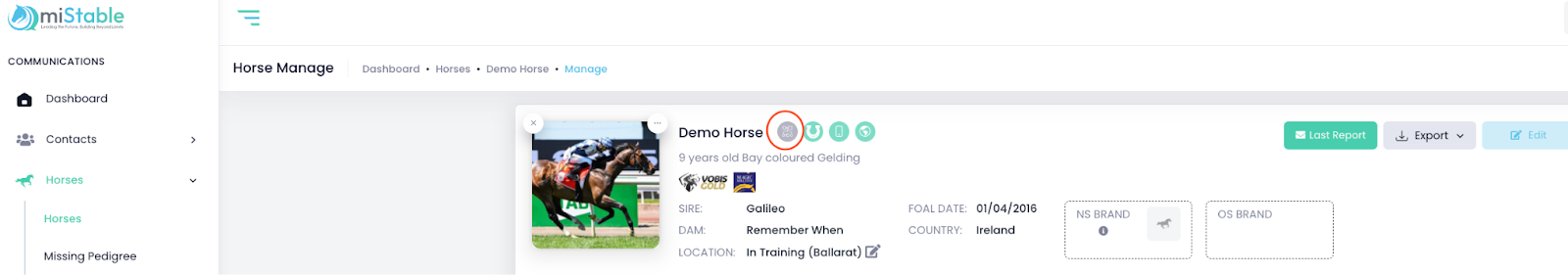 - Green Icon: This indicates that a pedigree has been successfully attached to the horse profile