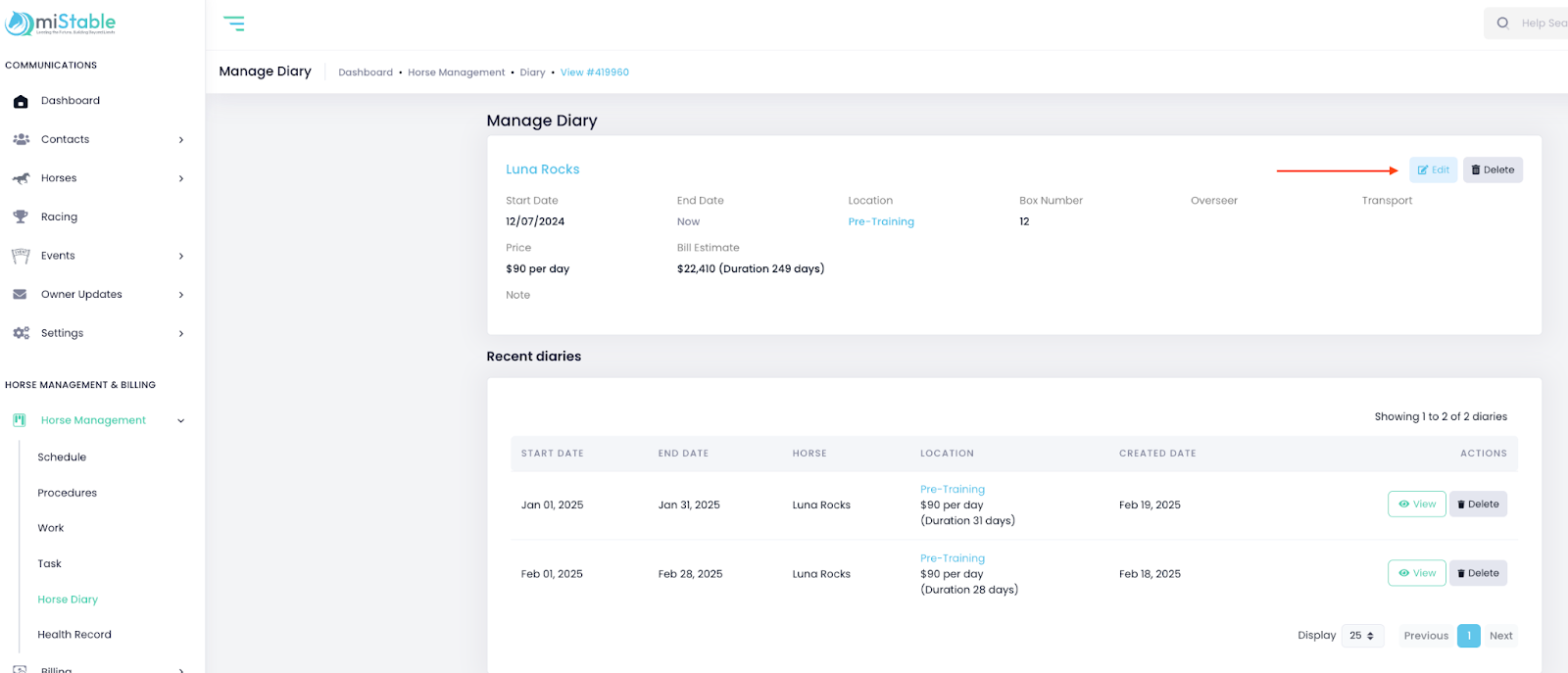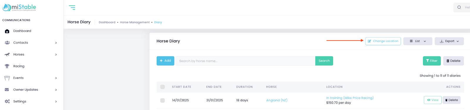 - Click View next to the horse’s current location