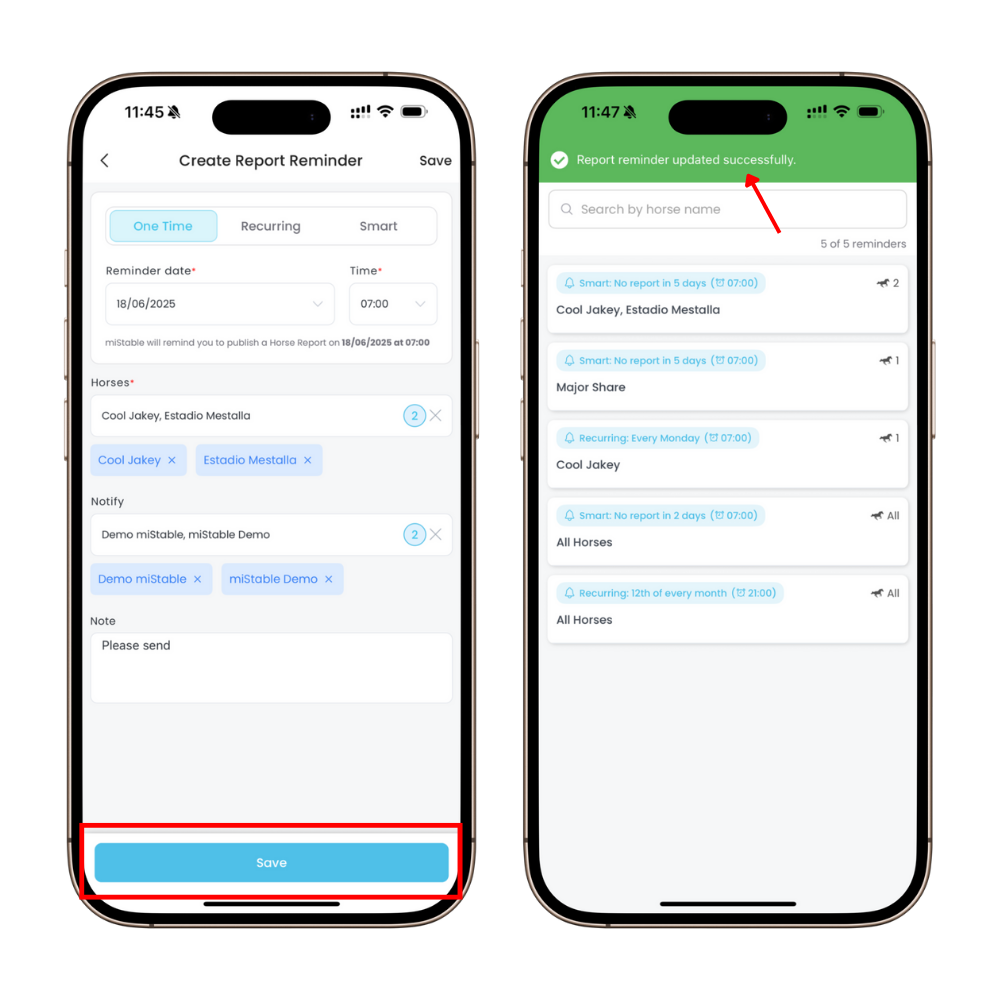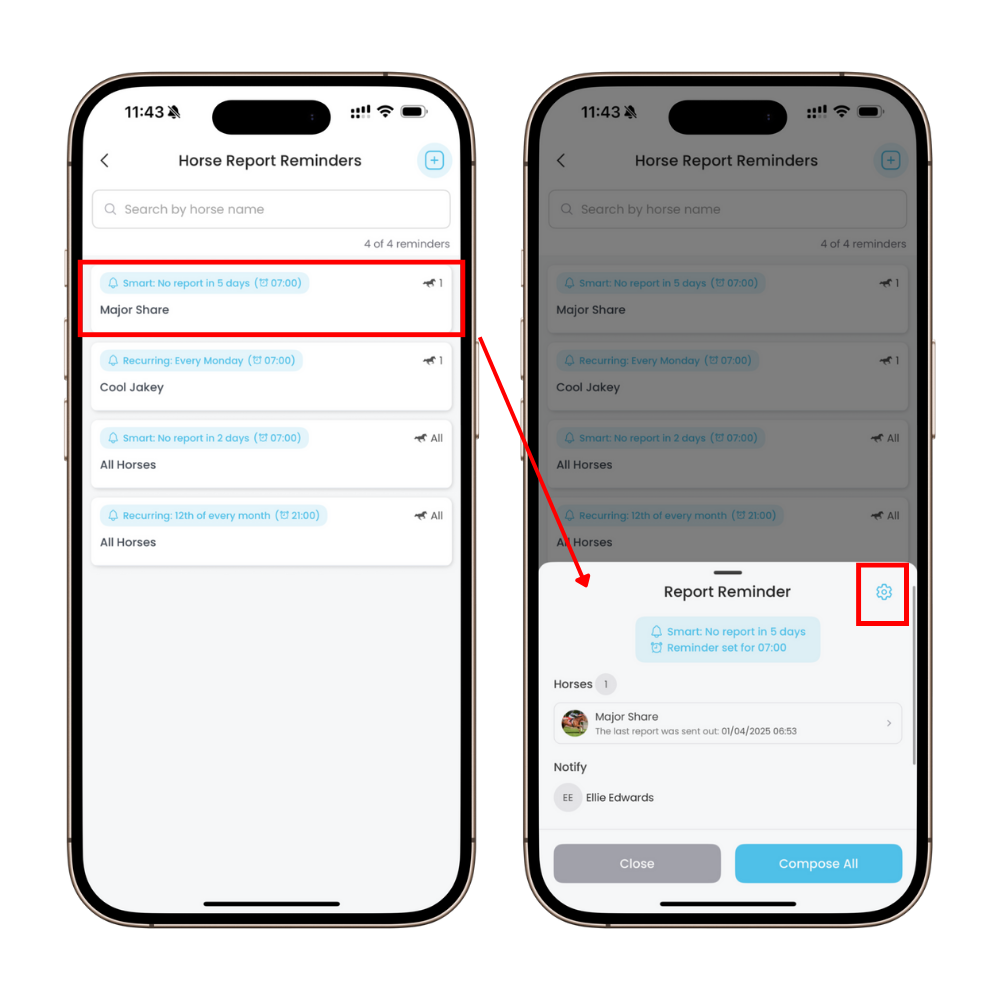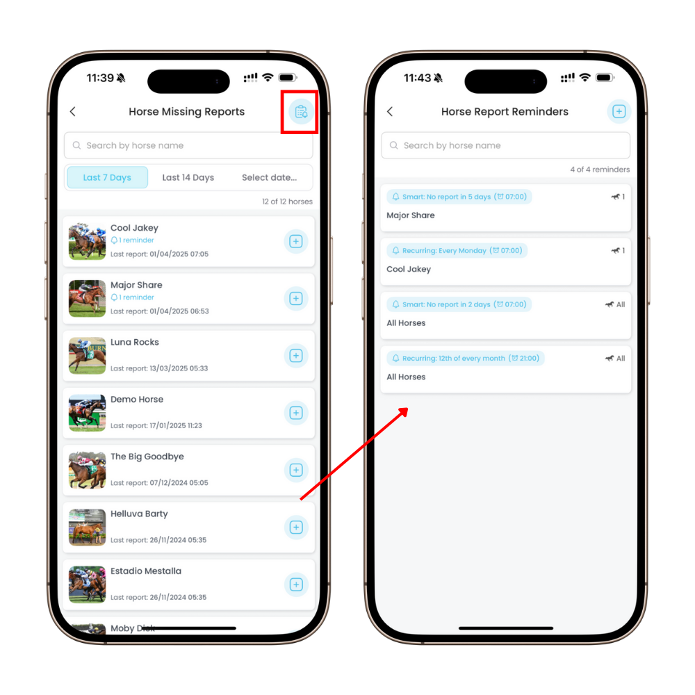 - Smart - Reminds you to send a report for horses that haven’t had a report in 'x' number of days