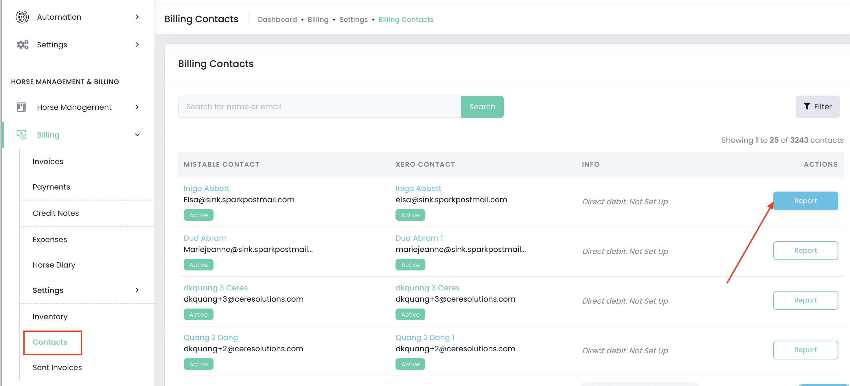 - From your Dashboard, go to Billing under the Horse Management & Billing section on the left-hand menu, then select Contacts.