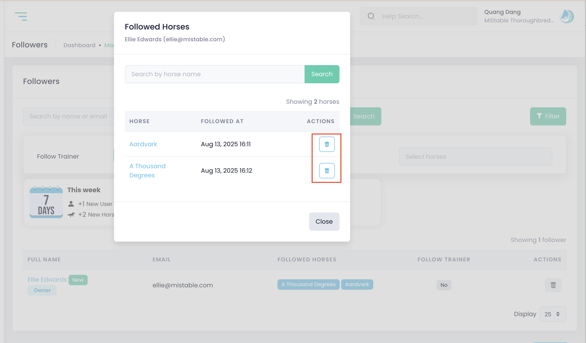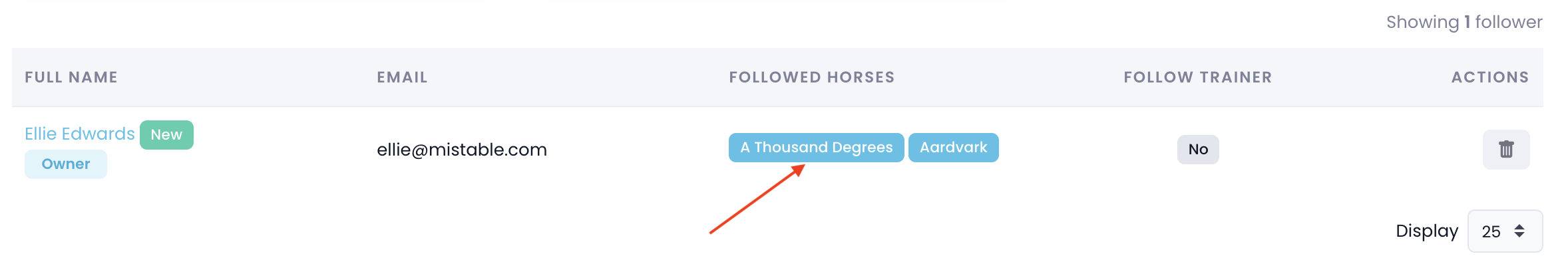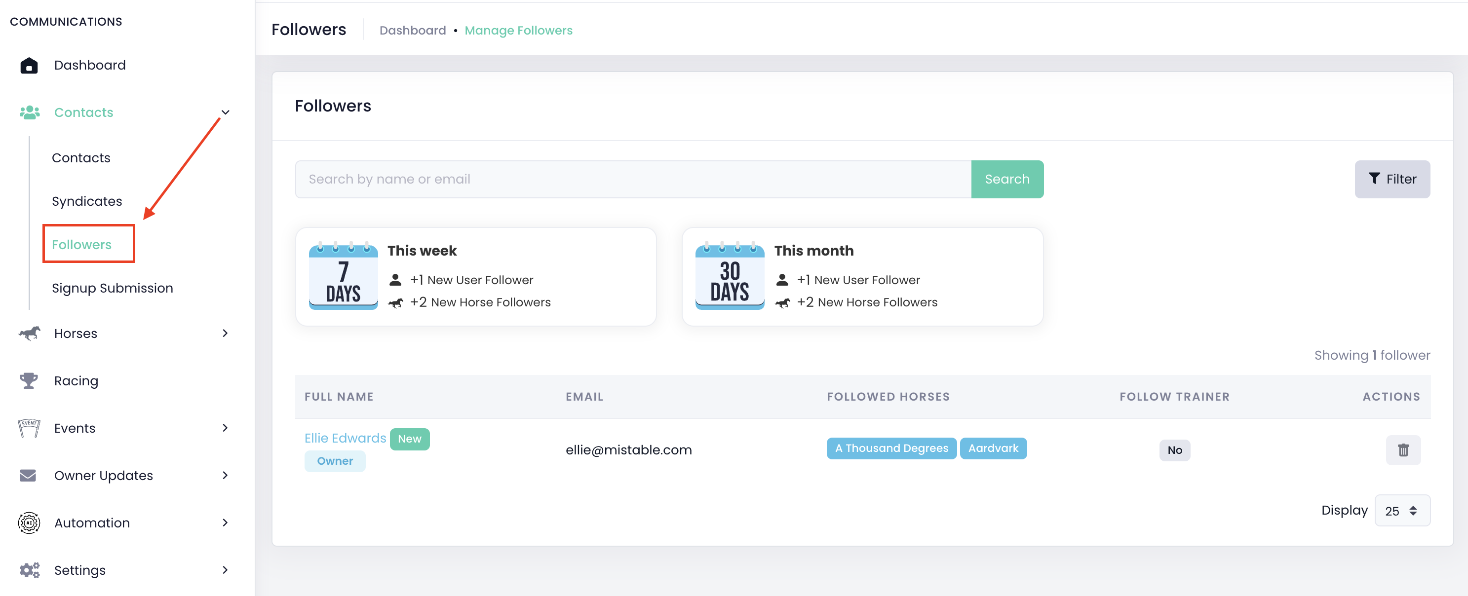 Now, whenever someone follows one of your horses or follows you directly through the miStable Owner App, their details are automatically added to your miStable dashboard with a “Follower” role.